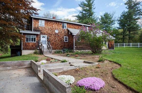 Quiet, private lots of space inside & out, sit back and enjoy the lush green yard surrounded by mature trees in this country setting. Come inside and see the wide wood floors, huge eat in kitchen with counter seating, front to back family room with cathedral ceiling, beams, gas stove, skylights & exterior doors front and back, first floor laundry room, front & back staircases, Master with own staircase, all of this on just over 2 acres, marvelous accent flowers, back patio for large gatherings the perfect place for entertaining.