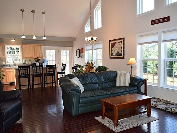 Newly built 2 bedroom ranch home on over 1.5 acres with direct waterfront access that leads to Sandy Pond. Expect to be impressed as you enter into the great room that boasts cherry hardwood floors, cathedral ceilings and lots of windows for added natural lighting. Your open concept kitchen with an island is perfect for cooking and entertaining. Large master bedroom with a fireplace is complimented by the ensuite bath with a tiled double shower, double sinks and a huge walk in closet! The attic has lots of potential to be turned into added living space. 2 bay attached garage to keep your vehicles and toys in. Relax on your back composite deck and enjoy the wildlife and sunsets. Take a stroll along the path hidden in your back yard to the water and enjoy your very own dock!