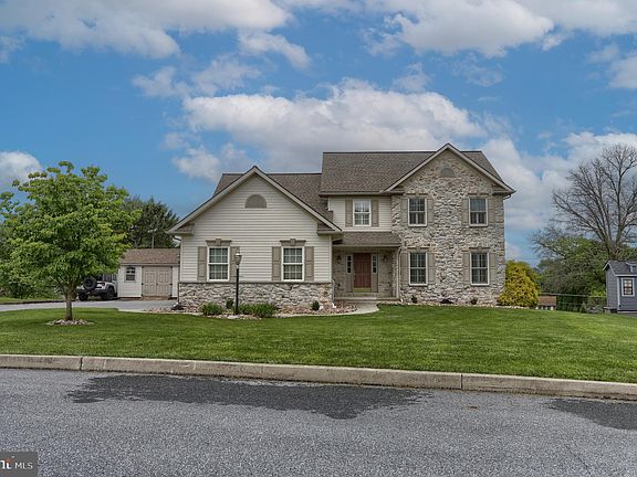 Well maintained two-story home in Cornwall-Lebanon school district situated on a .47 acre lot. This home has four bedrooms, three full baths and one-half bath. First floor includes a living room with wainscoting, sliding barn doors into foyer and dining room, and plantation shutters on the windows. The dining room has hardwood flooring and wainscoting. The kitchen is large with breakfast nook, island, pantry, built-in desk, and sliding door to deck. The kitchen is open to the family room, which is sunken and has a gas fireplace. There is also a first floor powder room off the foyer. The second floor includes the master bedroom with vaulted ceiling, window pane woodwork on one full wall, hidden attic storage, plantation wood shutters on the palatial windows, a walk-in closet with built-ins, and the attached master bath has a jetted tub, two separate vanities, a heated ceramic tile floor, and stall shower. There are three other bedrooms with plenty of closet space and a second full bath with tub/shower. There is a second floor laundry room with cabinetry. The lower level is daylight and opens by a French door to the paver patio and pool. There are built-ins for large screen TV, a ping pong table that is staying, a full third bath with tub/shower, and mechanical/storage room with radon mitigation system. The rear yard is vinyl fenced with a salt water in-ground heated pool, paver patio with built-in grill, and a raised bed garden. There is a side-load 3-car garage with cabinetry and French sink, and vinyl shed on concrete foundation and electric, and plenty of off-street parking.