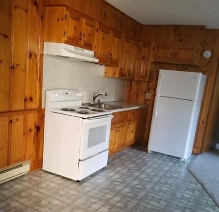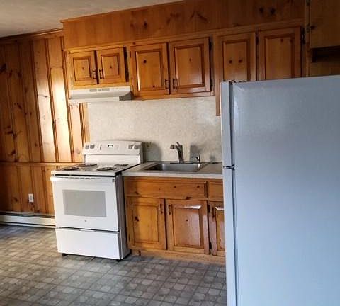This nice one bedroom apartment has a stove with self cleaning oven and refrigerator/freezer, both only 1 yr old. Also the Berber carpeting throughout is only 1 year old. Full kitchen and bathroom with tub/shower combination. Walk-in closet in the bedroom and a coat closet inside the front door. This is a back unit with off street parking. One of only 3 units in the building. Walking distance to downtown and the river for water sports or fishing as well as winter sports. No basement. New efficient electric baseboard heating Water and sewer is included in the rent. You are responsible for snow plowing your area of driveway. One year lease. No pets and no smoking on the property. References required.