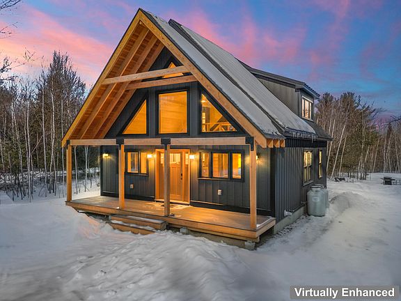 STUNNING NEW CONSTRUCTION IN THE HEART OF WESTERN MAINE! Experience the ultimate four-season lifestyle in this ''Mountain Modern'' masterpiece, perfectly situated for both adventure and relaxation. Boasting a striking architectural blend of sleek dark siding and a rustic timber-framed entrance, this brand-new build offers high-end finishes and an unbeatable location. The open-concept interior features vaulted ceilings, luxury plank flooring, and a floor-to-ceiling window grid that floods the home with natural light. The designer kitchen is a showstopper, equipped with geoengineered countertops, dark custom cabinetry, a deep basin sink, and premium stainless appliances. Retreat to the primary living area anchored by a beautiful stone fireplace, or head up to the expansive loft—featuring full headroom—perfect for a home office, media room, or additional sleeping quarters. A standout feature is the 400+ SF glassed-in 3-season porch, finished with elegant pine v-match walls and ceilings—the ideal spot for evening relaxation. The full, heated basement is plumbed for laundry and offers massive potential for future finished square footage, whether you envision a game room or extra bedrooms.