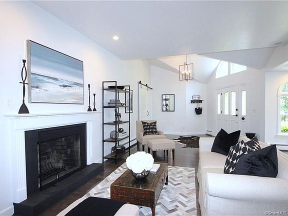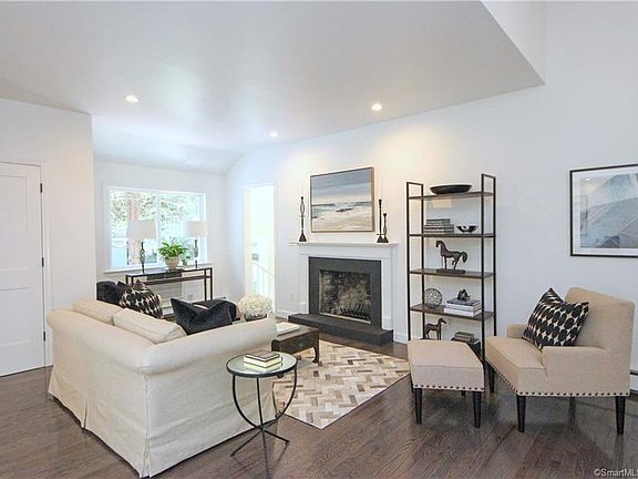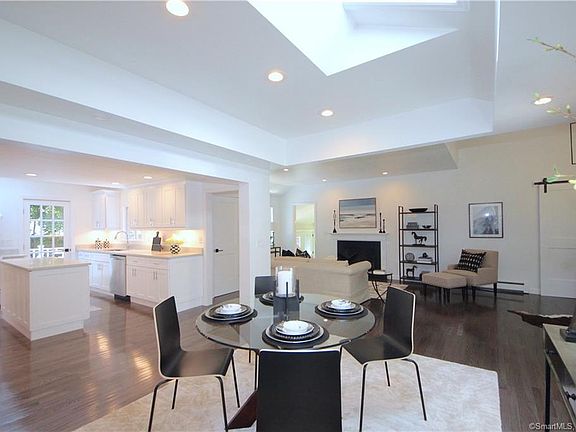 Fully renovated, light-filled ranch on a quiet, tree-lined road in the historic Silvermine section of Norwalk. New kitchen with stainless steel appliances, center island and quartz countertops. New baths with quartz-topped vanities. The open floor plan kitchen/dining room/ living room offers a large gathering space with new hardwood flooring, high ceilings and fireplace. Off the living room is a large family room with a wood stove. The master bedroom has a walk-in closet and new bath with soaking tub and double sinks, plus an alcove space that could be used as lounge or desk space. Two additional bedrooms, separated from the master bedroom, share a new bath. There are through-the-wall AC units that cool everything on the main level. New roof, new double-pane windows, new skylights, new carpeting, new oil tank, nearly new boiler and more. Outside there is a deck and patio and over half an acre of landscaped private property with new walkways and plantings. See it quickly before it gets snatched up! Owner/agent.