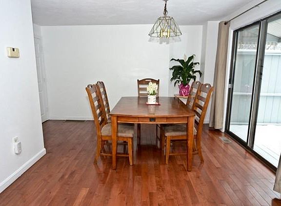 Sunny three bedroom townhouse features a spacious open floor plan, hardwood floors, (2014) Harvey windows, and an approximately two year old roof. Amenities include ample closet space and basement storage, central air, garage parking, and private deck. No monthly condo fee. Nicely sited with views to the back of Horn Pond Brook and mature leafy trees. Located on a cul-de-sac convenient to the bike path, with easy access to downtown Winchester, shops, and the commuter rail.