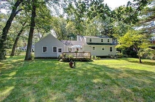 Move right into this lovely Gambrel Cape with 3/4 bedrooms, 2 full baths and 2 car attached garage in wonderful Oaks neighborhood! Lovely fireplaced living room with picture window, hardwood floors under carpet on first level, large updated kitchen opens to step down family room with cathedral ceiling and door to 16 x 16 deck overlooking large private level backyard! Huge front to back master bedroom with loads of closet space! Architectural roof, mostly newer windows! Walk to Lake Cochituate where you can swim, fish, boat, canoe, kayak, ice skate, etc! Walk to Reardon Park! 2 minutes to MA Pike, all major routes, schools and shopping!!