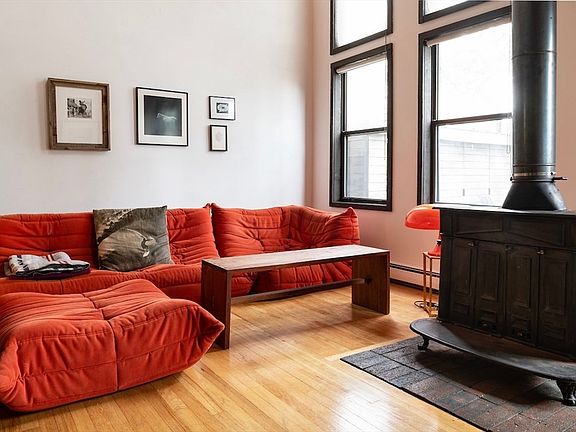 - Features: Wood / Coal / Pellet Stove, Cathedral Ceiling(s), Beamed Ceilings, Flooring - Hardwood, Exterior Access, Open Floorplan, Slider