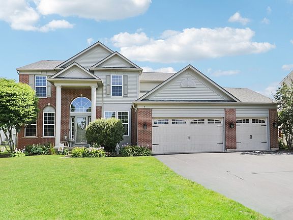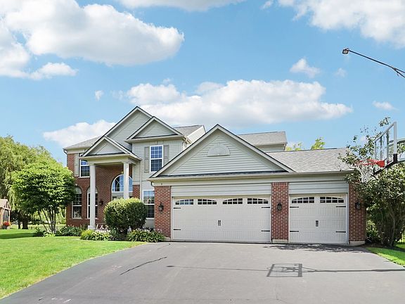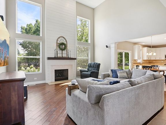 Don't miss this beautifully updated home in sought-after Manchester Lakes! Great curb appeal, and newer roof and siding! Upon entering the home, you'll be met with a bright open floor plan with fresh neutral paint, gorgeous newer hardwood floors, and tons of windows that bathe the home in natural sunlight. The soaring two-story family room showcases a floor-to-ceiling fireplace with huge widows on either side that overlook the backyard. Adjoining the family room is the gourmet kitchen, boasting granite countertops, stainless steel appliances, a large center island with breakfast bar seating, and an eating area with table space that exits to the patio ~ ideal layout for hosting friends & family! Separate formal dining room with a built-in hutch for storage. The first-floor laundry room exits to the attached three-car heated garage! The private home office is ideal for anyone working remotely. A half bath and the living room complete the main level. Upstairs, the impressive owners suite has a vaulted ceiling, a huge walk-in closet, and double doors leading to a recently remodeled master bath featuring his & hers vanities, a soaking tub, and a luxurious tiled shower. The 2nd, 3rd, and 4th bedrooms share access to the updated full hall bath with a double sink vanity. The recently finished basement offers even more living space! The large rec room even features hideaway murphy beds for guest accommodations! Outside, the new expansive brick paver patio is a perfect spot to relax. Great cul-de-sac location, just steps from a walking/biking path that winds through the neighborhood. Huntley schools! Quick access to all of the amenities along Randall Road and Route 47, and not far from I-90 or the Metra. This one truly has it all... WELCOME HOME!!!