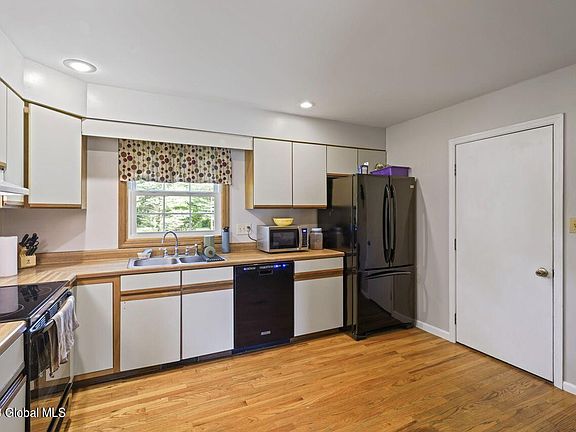 OPEN HOUSE HAS BEEN CANCELLED!! This lovingly cared for Cape Cod style home has everything you have been looking for! The flowing floor plan is perfect for entertaining. New flooring in living room and formal dining room adds warmth and style. First floor bath has been updated and has a tiled walk-in shower. Eat in kitchen has newer appliances. Second floor has 2 large bedrooms and an updated full bath.Bedroom downstairs has sliding glass doors that lead out to the landscaped yard complete with stamped concrete patio and a storage shed. Basement is partially finished providing extra living space. Attached one car garage.
