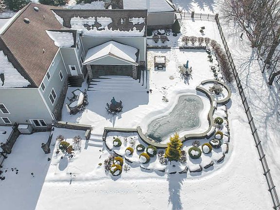 Welcome to the wide open views of Dickinson Township! This sprawling 6 bedroom home boasts over 5900 sqft of finished space with lux details rarely seen in this price point. The buyer of this home will notice the highest quality of finishes including a gourmet level kitchen with professional level appliances, pull out mini fridge drawers, an extensive eat at island and solid cherry cabinetry. Entertain and enjoy the game around the corner in your truly impressive great room with radiant floor heat, wood burning fireplace, custom detailed bar and a view of your massive outdoor patio surrounding your custom heated/saltwater lagoon with 3 mini waterfalls! The outdoor area has a $200,000 investment with a covered patio, hot tub, eating area, built-in grill bar with a new grill in 2019. The beautiful landscaping, outdoor lighting and hard-scaping package rounds out this fantastic backyard. The second floor has 5 beds & 3 full baths including a large main bedroom with custom walk in closets, a luxury bath with custom tiled shower and a private balcony overlooking the great room. Beds 2&3 share a Jack and Jill bath with another custom tiled shower. Down the hall is your office or crafting room with high end built-in cabinetry. Head down to your finished basement and enjoy a second mini kitchenette/bar, half bath, office and ample storage. Control all your mechanical there including a 4 zoned heating area and tank-less water heater! Bring your car/toy collection too, because you'll have a 6 car detached garage over your stamped concrete driveway. Call to set up your tour soon!!!