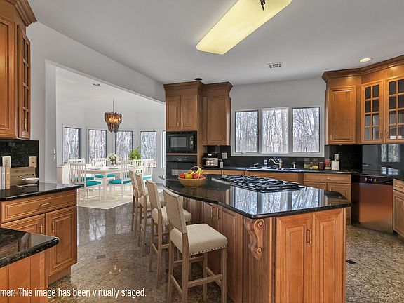 Forest Estates brick front Colonial with over 5600 square feet of living space is ready to welcome you home! This home features 5 bedrooms,4.5 baths, Double door entry,2 story entry foyer with marble floors & Oak Curled Staircase,Open Floor plan, Exquisite 2 story family room with floor to ceiling windows,Fireplace and sliders out to huge deck overlooking the backyard, Custom Kitchen with marble floors, center island w/gas stove top, granite countertops,appliances and circular breakfast room with windows, Hardwood floors throughout,Formal living room and Dining room, Office/Den,First floor bedroom close to first floor full bath, First Floor laundry room,Master bedroom suite with owners custom full bath,Circular driveway & 3 car oversized garage all on a 4.59 acres beautiful wooded property