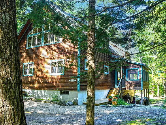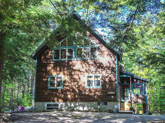Immaculate fully furnished home boasting 23' cathedral wood ceilings offers a spacious open-concept layout seamlessly connecting the kitchen, dining, and living areas, enhanced by a cozy wood stove and generous windows that flood the space with natural light. The first floor hosts two bedrooms, a full bathroom, and a sizeable screened porch. Outside, a wrap-around deck accommodates a brand-new hot tub and outdoor dining area. The second floor reveals a luxurious and spacious master suite, complete with its own full bathroom. The basement is fully finished and equipped with two bunk rooms, an additional full bathroom, a utility room, and an expansive and beautifully designed bar/playroom area. This property offers access to all the amenities of Knights Hill, including a boating area with boat slips, a pool area, tennis courts, a beach, and more. With Pleasant Mountain just a mile away, this home provides a complete package for relaxation and recreation.