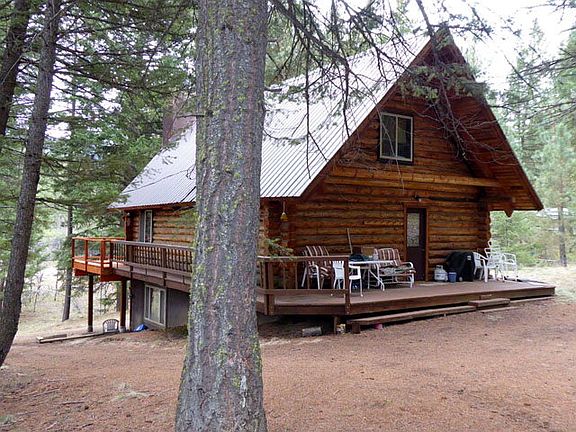 THE LOG CABIN you've dreamed about. Located in the Clear Creek area where you can take off from your door on ATV, snowmobile, bicycle, or skis to access public lands and Herrick Reservoir. Tucked in the trees for privacy with a beautiful, brand new deck. This cabin has an open living room and kitchen, a deep spa bathtub, a rec room on the lower level, and two cozy propane stoves. Detached garage and storage for toys. This is a perfect retreat or full-time home.