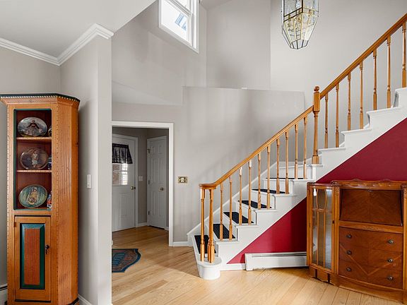 Welcome to this charming 2-bedroom Cape nestled in the highly desirable Meadows Edge neighborhood in Essex. This well-maintained home offers a delightful blend of cozy living and expansive outdoor space, making it perfect for both relaxation and entertaining. Inside, you’ll find a 2 story entry with curved staircase and a spacious layout featuring an open living and dining area with a cozy gas fireplace, perfect for those cool Vermont evenings. The eat-in kitchen boasts a kitchen island and ample space for cooking and gatherings.The 1st floor laundry and half bath add to the convenience of daily living. The 1st floor master suite is a true retreat, including a large bathroom w/high ceilings, skylight and WI closet. Upstairs, a fun loft area provides a versatile space for a home office, or family room with natural light streaming in through. The home is surrounded by beautifully landscaped gardens and rock walls, which can be enjoyed from the 3 season porch with new windows, insulation & door. Additional features include red oak flooring and new windows on the 1st floor, laminate flooring upstairs, freshly painted inside and out (03/04) a full  insulated bsmt w/built-in workbench & space for projects or expansion. You’ll love being just minutes away from The Essex Experience with movie theater, dining, shopping and more. Come discover your next home at 9 Bluestem —a place where comfort and charm meet Vermont living at its finest.