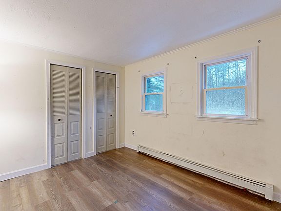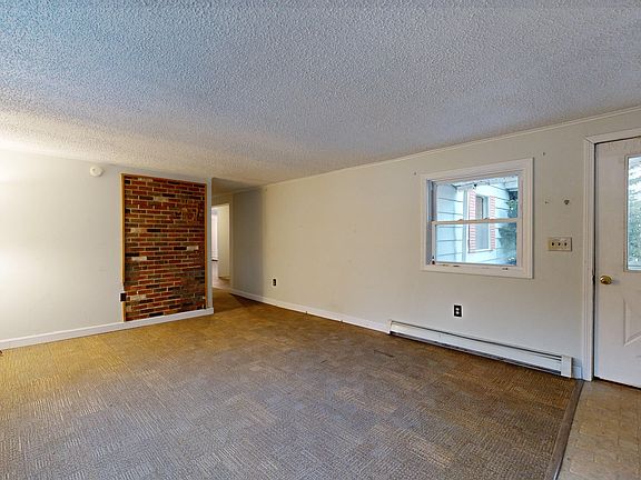 A three bedroom ranch (formerly mobile home with built additions), with a four piece bathroom, den, living room, well-laid out kitchen and office/storage room with built-in desk with counter (great for crafting). On 1.3 acres. Ranch has attached 2 bay garage with added storage shed. Hot top driveway. Sits back from the road, is sunny, safe. Ranch has hot water baseboard heat, water and septic, hook-up for wood stove. All appliances are included.