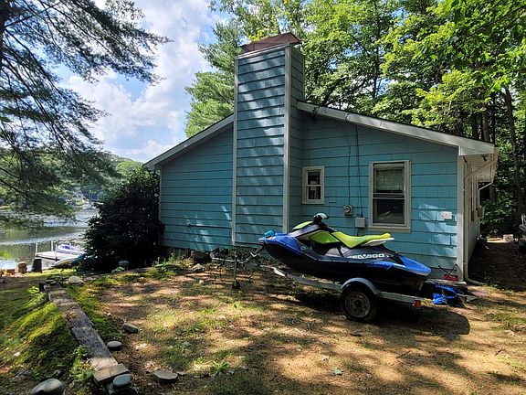 Owned waterfront on beautiful Crystal Lake in quaint Gilmanton Iron Works, NH! One-story 2 bedroom, 1 bath camp features open concept kitchen/dining showcasing stone wood fireplace with hearth and newer vinyl plank flooring. Galley kitchen offers ample counter space, new SS frig, electric range and pass through to 4-season room. 4-Season Room overlooks the lake and mountains with sliders to the back deck. Seasonal dock, 100' of waterfront, shed, masonry grill and fairly level lot! Situated in the heart of the Lakes Region offering close proximity to Gunstock Mountain Resort, skiing, hiking and shopping! Showings begin on Friday, August 4th by appointment and Open House on Saturday and Sunday from 10:00 - Noon.
