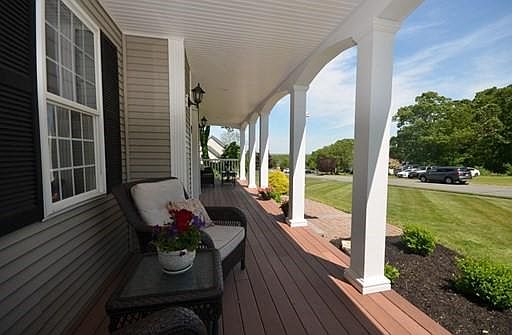 This is the one you have been waiting for! This home sits perfectly on a corner lot with the composite farmer's porch facing protected open space for peaceful views. The amazing backyard is an oasis! It features a fenced in pool area with mature plantings, multiple lounging areas and upgraded composite deck. The inside welcomes you with freshly finished hardwood floors and paint, a BRAND NEW kitchen with white cabinets, quartz countertops, perfect backslash, new light fixtures & young appliances! The floor plan is open and bright and offers large rooms including a 22x24 cathedral family room with fireplace. The second level has a master suite with walk-in closet and new bathroom with a tiled shower. There are also two guest bedrooms and a fully updated main bath. There is a middle office/workout space that leads to the large 3rd floor bedroom with sitting area & double closets! Awesome finished basement for extra space! Young roof, furnace, A/C, H20 tank. Simply move in and enjoy!