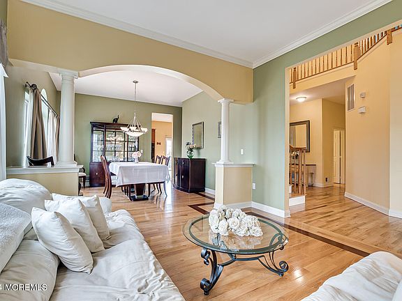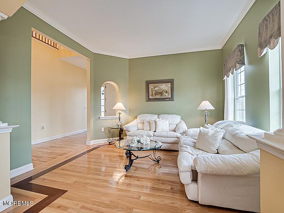 Welcome to this beautiful, well-maintained 4-bedroom, 4.5 bath home located in the highly desirable Toscana of Howell. The main level offers a bright living room and dining room both featuring inlaid hardwood floors, an office with bay window and spacious family room, complete with a gas fireplace. The upgraded kitchen is equipped with Silestone countertops, creating a stylish and functional space. The convenience of a laundry room on the main level adds to the home's practicality. The master bedroom has newly painted walls, new carpet, a professionally organized walk-in closet and master bathroom. The second bedroom has its own full bathroom, ensuring privacy for guests or family members. Additional highlights include a walk-up attic, 2-zone heating and air conditioning, a whole house generator, and owned solar panels for energy efficiency. The fully finished walk-out basement offers additional living space and features a full bath. You will fall in love with the backyard that boosts a salt water in-ground pool surrounded by a paver patio/deck. The backyard also has a shed/bar, gazebo, deck and plenty of space for gatherings and entertaining. This home is conveniently located near shopping, major highways, and the Jersey Shore. Don't miss this one! Schedule your appointment today!