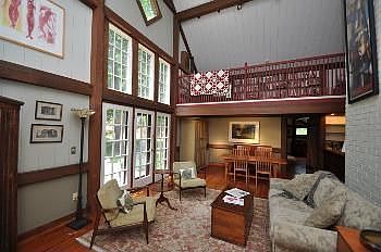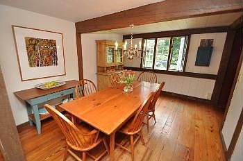 Casual Elegance in Premier Village Location. This Classic Yankee Barn design was built in 1982 and has been beautifully updated in recent years - portraying a wonderful blend of rustic architecture and sophisticated style. Spanning nearly 3600 square feet, this charming in-town residence features cathedral ceilings, wide plank wood flooring and exposed beams. With 11 Rooms in total, the main level features a dramatic 2 story height great room, dining room, kitchen with breakfast area, and pantry, family room a first floor master bedroom with stunning marble bath. The upper level features 3 bedrooms, full bathroom and fabulous open loft space with built-in bookcases. In addition, there is a private In-Law/Au-Pair suite with sitting room, bedroom and lovely full bath. The light and bright lower level is handsomely finished. The professionally landscaped grounds with gorgeous specimen plantings and stunning English gardens exquisitely frames the level, one acre property. This In-Town Gem exudes character inside and out.