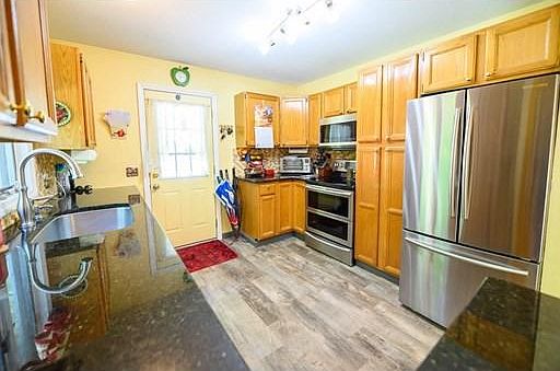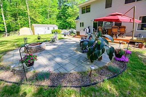 Enjoy al fresco dining on a fabulous patio then soak away in your hot tub and later warm up by the fire pit. Sounds great, right?! This cul-de-sac location offers a peaceful backyard location and yet is convenient to Route 9 for a short ride to downtown Amherst, bike path, and colleges. 4 bedrooms and 2 full baths offer flexibility for sleeping, home schooling, guests, play room, exercise room or office. A sunny living room with cathedral ceiling and pellet stove is open to the kitchen. There is a large shed with a garage door for storage. Passed Title V.