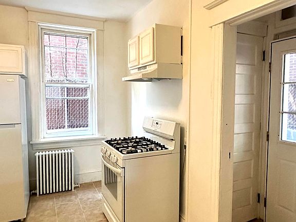 Downstairs is a large 1 bd apartment. It has a private side entry that leads into kitchen off back right side of building next to freshly mulched area for small garden or al fresco dining. One car can fit in driveway. There are additional vacant spots in front of the house at the curb. Both units are unrented.