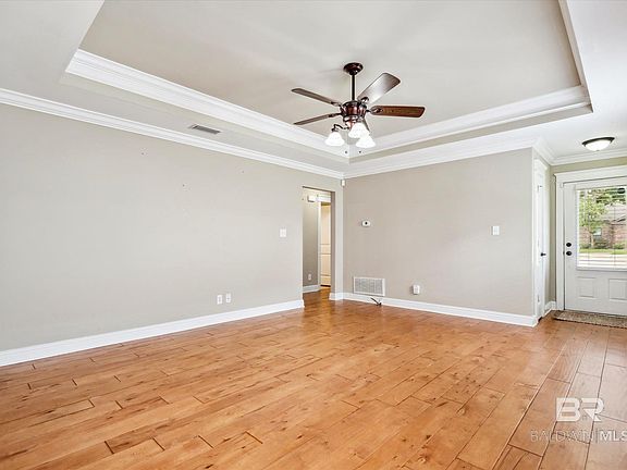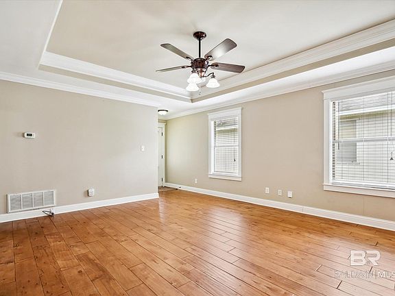 Discover the charm and convenience of this inviting brick patio home, ideally situated near shopping and the University of South Alabama. Built in 2009, this well-maintained residence boasts 3 bedrooms and 2 full baths. Step inside to find a welcoming atmosphere highlighted by hardwood floors, abundant natural light from ample windows, and lofty smooth ceilings that enhance the spacious family room. The open floor plan seamlessly connects the kitchen, adorned with granite countertops, a generous breakfast bar, stained cabinets, and a convenient pantry, to the cozy breakfast nook. The master suite offers high end touches with crown molding & trey ceiling, expansive walk-in closet, and an en suite bath featuring a granite-topped vanity and bath/shower combo. Two additional bedrooms share a well-appointed guest bath located in the hall. Added conveniences include a sizable laundry room, outside storage room, and a shed, catering to all your storage needs. Outside, a privacy fenced backyard and a charming covered patio create a perfect setting for outdoor gatherings and grilling, offering low-maintenance enjoyment. This home is a must-see, blending comfort, style, and practicality in a desirable location. Call to schedule your personal showing of this beautiful home! All measurements are approximate and no guaranteed, buyer to verify. Buyer to verify all information during due diligence.