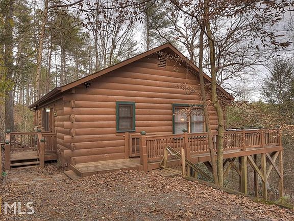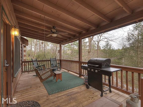 The perfect mountain getaway... Loaded with charm and in excellent condition, relax and get away from the hustle and bustle of everyday life and come enjoy your private oasis that sits amongst the tree tops. This home features one level living, all wood interior, an open great room and spacious dining room area, beautiful stone fireplace in the main living, and 2 private suites each with a private bath. Step outside to enjoy the peaceful serenity of nature on the wrap around deck where you can practically reach out and touch the leaves. Nestled in the woods and located conveniently between Blue Ridge and Ellijay, you will feel like you are a world away, yet still only miles from shopping, dining, hiking, biking, zip lining, and entertainment. With excellent rental history, this property will flourish as an investment property, but is also great for full or part-time living. Your tree top mountain hideaway awaits...