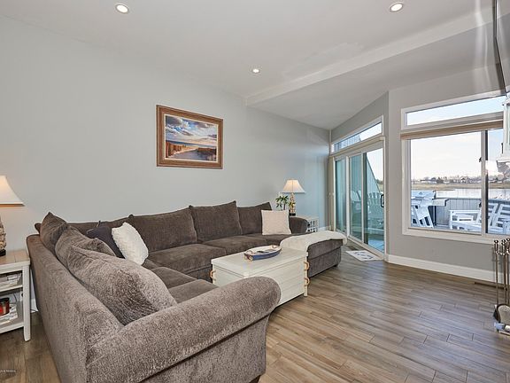 THIS IS IT! Elegance & style along with breath-taking sunsets! What more could you ask for? How about a dock, boat slip & a garage! Oh and your maintenance fees include water & flood insurance. This ''Pier One'' style townhome offers 2 bedrooms, 2 1/2 baths, updated kitchen w/custom cabinetry, granite counters, marble tiled backsplash w/mosaic glass tile inserts & stainless steel appliance pkg. Dining room & living room w/WB fireplace and sliders to your private deck. All baths recently renovated! Master bedroom displays vaulted ceilings & a skylight in the 2-story stairway brings in plenty of natural light. Close to town, shops & all major transportation. Make this your new home!Fee includes Dock and Flood insurance