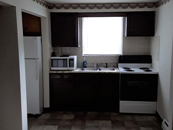Open House - Saturday, June 10th 1-3 and Sunday, June 11 from 3-5. #3 of 5 apartments. This apartment is located on the 1st floor of the building. Kitchen with appliances and a microwave, living room is carpeted - NO DINING ROOM. Bedroom is located in the front of the apartment so you get all the natural sunlight. Some storage and there is no laundry hook ups in this facility. First months rent and security a must! If there is interest, an application and fee of 30.00 is required to move forward. Owner pays for trash, water and sewer