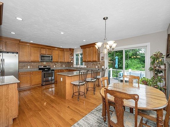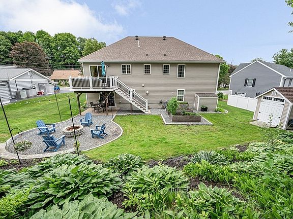 Welcome Home to this stunning oversized contemporary split entry in fantastic location. Built in 2009, this home in a neighborhood has it all. Kitchen with breakfast bar is wide open to dining room with sliders to deck and backyard paradise. Bright & airy living room with fireplace, large windows and cathedral ceiling. Master bedroom with private bath, 2 additional generous size bedrooms and main bath with double sinks complete this level. Walk out lower level features family room w/sliders, a fourth bedroom or home office, and full bath. Home layout affords the possibility of extended family living. Manicured yard with covered patio and built in firepit are perfect for those summer evenings. 2 car garage, 3 full baths, storage shed and so much more make this home picture perfect. Open Houses Saturday June 24 and Sunday June 25 from 11 to 1.