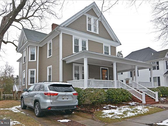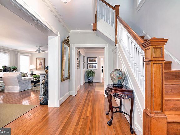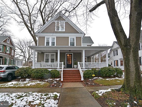 This beautiful in-town 4+bedroom /3.5 baths, 3,800 sf circa 1910 Center Hall QAV is lovingly maintained & thoughtfully brought into the 21st Century. Some of the outstanding features are 9 ft. ceilings, open flow, large rooms tastefully painted in neutral colors, original moldings, pocket doors, built-ins, ceiling fans, honey hardwood floors, PLATO"inset double stacked" kitchen cabinets, 8 ft. granite/stone kitchen island , SS appliances,tile kitchen floor and butler's prep area, gas stove-top , upgraded appliances with 2 refrigerators, 2 separate sinks, hidden 1st floor laundry, back staircase, Primary Bedroom en-suite w/ rimless glass shower, double sinks & 9x9 dressing room/closet. Large fully finished, heated and air-conditioned 3rd floor that could be another family room or a 5th bedroom. Low-maintenance landscaped yard , double back deck, brick patio, fenced back yard , and luxurious mahogany wrap-around front porch, large unfinished basement and large attic closets that provide great storage space.