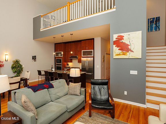 Tri-level open concept condominium featuring 30' cathedral-esque ceilings, updated appliances, 3-car garage, master suite on the second floor and a guest bedroom on the main floor. Highlights include beautiful lighting, large windows, walk-in closets, and a robust pantry and kitchen island.