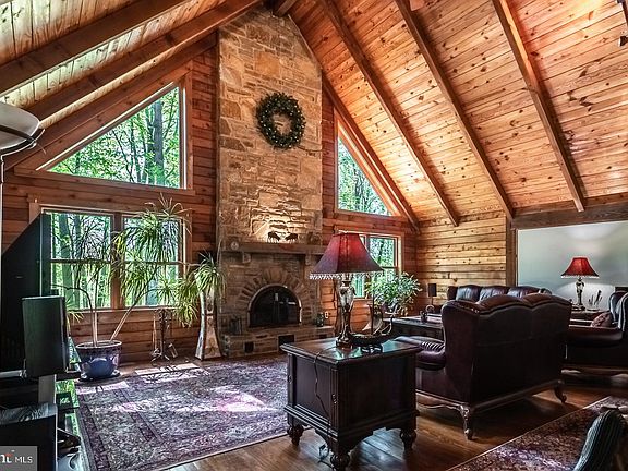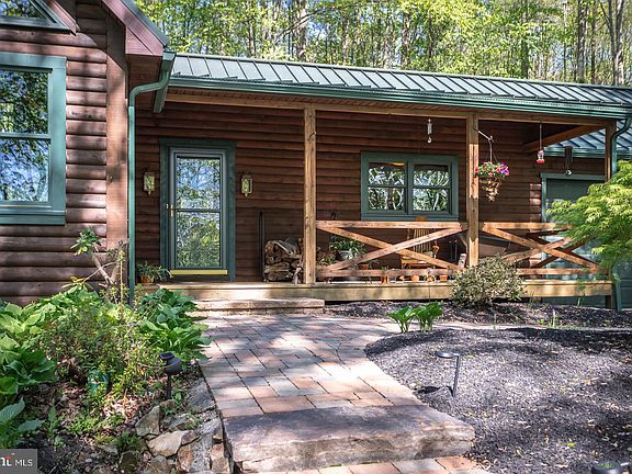 Nestled in a tranquil setting on 2.7 mostly wooded acres sits 9 Buck Run Dr-- a nature lover~s paradise. Explore the woods watching the deer and turkey or enjoy your morning coffee in the private screened in porch or paver patio. A welcoming front porch greets you up a circular driveway. Craftsmanship is noticeable when you come to the top of the drive with the standing seam metal roof, and the 8 X 12 V grooved logs that are low maintenance and dovetailed at the corners. The Cathedral, two story family room is expansive and anchored by the oversized wood burning furnace. The Fireplace is stone faced with an arched hearth, and on either side are beautiful custom trapezoid shaped windows which bring the outdoors in. Upstairs a loft has many potential uses currently an office, makes working not so hard with this type of setting! The kitchen with updated higher end stainless appliances, corian counters and tons of hickory cabinets provides excellent space for prep-space and storage. You can bring your meals outdoors through the sliding glass doors and enjoy your meal with nature surrounding you. For more formal entertaining the dining room located just off the kitchen, offers plenty of space for a larger gathering. The large Master Bedroom with en-suite bath features a walk in closet, and sliding back doors that take you to a screened in patio. Imagine yourself here enjoying a morning coffee or winding down from your day. Two additional secondary bedrooms accommodated by a hall bath and conveniently located laundry area complete this home. This property is an oasis and perfect for someone loving privacy and the outdoors. Make your appointment today!