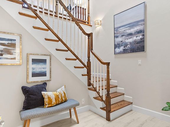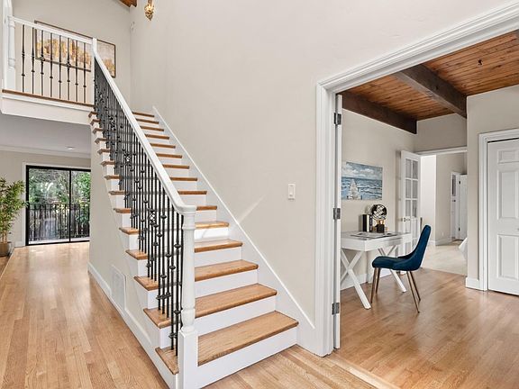This exceptional 4-bedroom, 3.5-bathroom home with detached 4-car garage offers an open, light-filled layout with soaring beamed ceilings and a seamless flow. The inviting living room, complete with a cozy fireplace and dining space, opens to a beautiful back patio perfect for indoor-outdoor living. The well-appointed kitchen features a charming bay window and connects to a formal dining area. Just off the entry, a versatile office or seating area provides a welcoming touch. The main-level primary suite is a true retreat, featuring a fireplace, a remodeled spa-like bathroom, and generous space for relaxation. Two additional downstairs bedrooms share a full hall bath, and a conveniently located laundry room adds to the home's functionality. Upstairs, a private primary suite offers a spacious sanctuary with its own balcony, a luxurious bathroom, and a flexible seating area ideal for a home office or gym. Outside, the backyard is designed for both relaxation and entertaining, complete with a spa and firepit. A beautifully paved driveway leads to a detached 4-car garage, offering ample storage and parking. Ideally situated just minutes from vibrant downtown restaurants and shops, with easy access to major commute routes. This home is ideal for everyday living or entertaining!