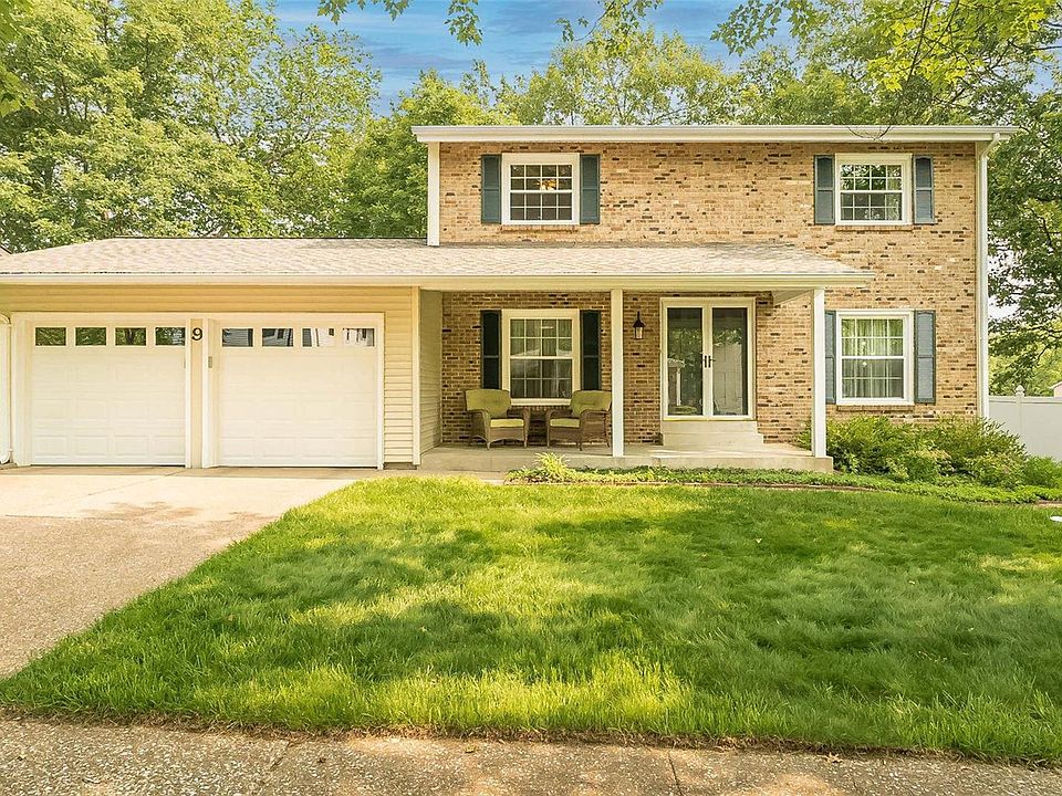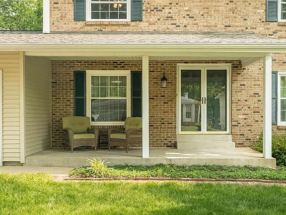 Welcome home! Charming covered front porch ushers you inside this beautifully updtd 2-story gem featuring 4 spacious BR's & 2.5 stylishly updtd BA's. Enjoy the space this center hall plan provides w/its formal LR, DR & large FR w/frplc. Kit features granite countertops, ss appliances, ample storage space & walk-in pantry. Generous primary suite has convenient en-suite bath, complete w/contemporary finishes. Step outside to the party perfect patio, ideal for entertaining or simply enjoying a quiet evening. The beautiful fenced-in backyard is lush & landscaped while the covered front porch is the perfect spot to start your day. Add'l updts include: hvac '15, roof & gutters '15, sewer lateral & cleanout stack '15, granite counters '15, electric panel '18, garage doors, interior paint '19, drain tile & sump pump '21 and carpets '23. Situated on a serene cul-de-sac, this home offers the perfect blend of comfort & convenience along w/being close to schools, hwys, restaurants & shopping!
