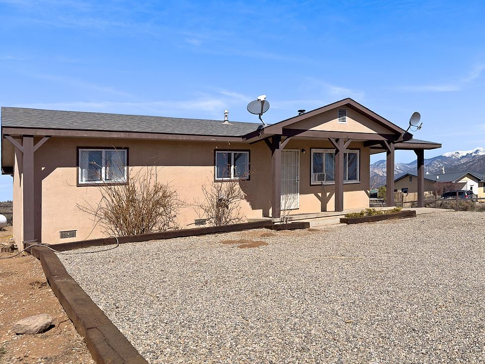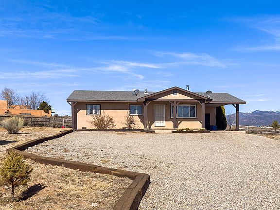 Perfect starter home with mountin views. Three bedroom home with tons of sunlight and land for your dreams. 1.1 acres contains a front and back yard with pines and fruit trees on a watering system within a fully fenced in yard perfect for kids and dogs. Stretch out on your hammock on the front porch with coffee and watch the sunrise over the mountains. Behind the storage unit is untapped potencial for your imagination. Use the 3/4 of an acre for a massive garden, horses, goats or chickens, or have another dwelling. Your own private well and septic makes that easy. New laminate floors in the kitchen and bedroom with an allowence for flooring of your choice in the living room. Cozy wood burning fireplace in the living room but gas forced heat keeps the whole house warm. Easy to show on short notice