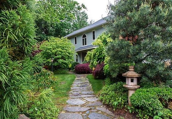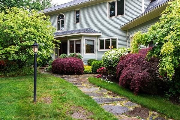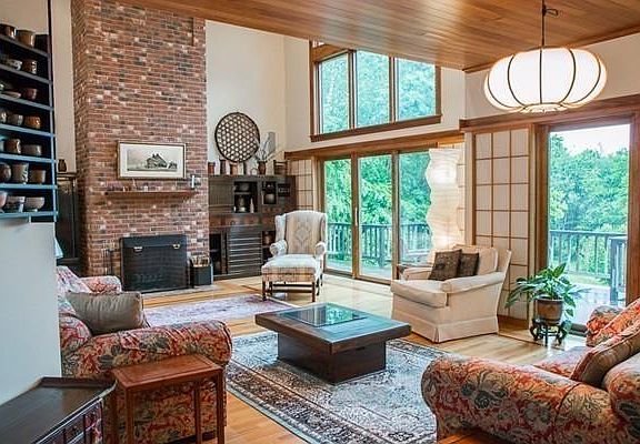 Be ready to be impressed! Stunning 5 bedroom, 4 bathroom contemporary home with park-like gardens featuring gorgeous oak hardwoods, beautiful seasonal views, and a versatile open floor plan! Built with a first floor master (currently used as a family room) with attached bath and spacious walk in closet (currently used as office). Jaw dropping floor to cathedral ceiling brick fireplace anchors the open living area with sliders showcasing the seasonal views and abundance of natural light! French doors lead you to the open concept kitchen and dining area with cherry cabinetry and ceilings. A mudroom with built in desk, laundry room and an enclosed sunroom (with electric heat) finish off the main level living area. Upstairs, you will find 4 generous bedrooms (with even more generous closets!) and 2 full bathrooms. Finished walk-out basement with brick fireplace sitting area, office, cedar closet and extra storage areas. Newer Navien heating system with whole house humidifier.