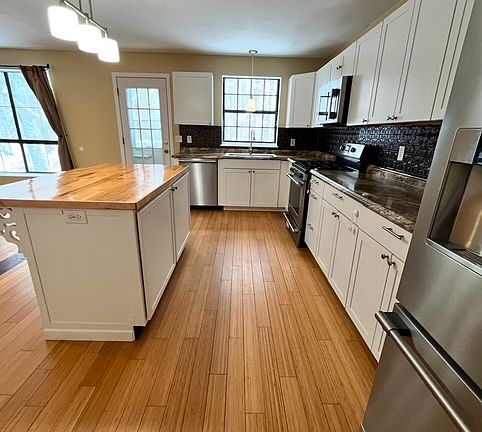 Six minutes to Cornell on a culdesac in northeast Ithaca, just off Sapsucker Woods Road, you'll find a home as quiet and serene as you could ask for within city limits. Walk to bird sanctuary, go for long walks all around. This upper-level 1,438 sq ft fully insulated 3BR/1.5BA upper unit (lower smaller unit below tenanted) has lots of natural light and views to front and backyards. Full modern updated kitchen boasts Frigidaire Pro stainless steel appliances, gas stove, ice-making refrigerator, microwave, and dishwasher. Expansive large raised deck and spacious backyard with natural fire pit. Savor the evenings in spring, summer, fall, from your backyard area surrounded by forest. Free shared washer and dryer use. Water, sewer, gas, heat, and electricity included in rent. Parking for two cars in driveway. No-smoking unit. Pets considered on a case-by-case basis. Lease to begin Aug 1, 2025, ending June 30th, 2026 (11 months). Aug 1, 2025 until June 30th, 2026. Will consider pets on a case-by-case basis. No smoking. Two-year plus leases considered.