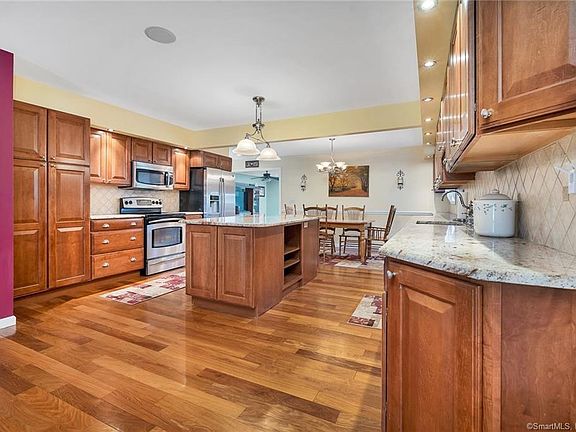 Dreams evolved to intention when designing this custom-built Colonial! Boasting over 4,000 Sq.Ft. of living space, 5 bedrooms & 3.5 baths, this two-stage renovation (1983 and 2003) has created a cul-de sac home that checks every box. A foyer welcomes you inside to an expanded main level as hardwood floors guide you effortlessly from room to room. The formal dining area is complimented by the appointed eat-in gourmet kitchen w/over-sized center island & wine chiller, granite tops, tiled backsplash, abundant cabinetry & S/S appliances. The sun filled living room with its three skylights and slider to deck is an entertainer's dream. The main level bed w/skylight & bonus room that can easily be transitioned to a 6th bed has access to a full bath with tub/shower & half-bath w/laundry hookup making this a great in-law potential. Upper level showcases 3 generous sized beds and a primary ensuite w/sitting area, office room, walk-in closet & full bath with vaulted ceiling skylight. The excitement of the Lower-level reveals a finished play/media room with theatre screen and seating for those special movie nights. The unfinished areas are the utility room with built-in shelving, new natural gas boiler & water heater while the 840 sq.ft. workshop is perfect for storage and crafting. The exterior offers a 30x28 deck with wet bar, new trex flooring, PVC railings and metal canopy overlooking .35 acres of a fenced-in level yard w/shed. "Welcome Home" to the lifestyle everyone is looking for! Owner/Agent.