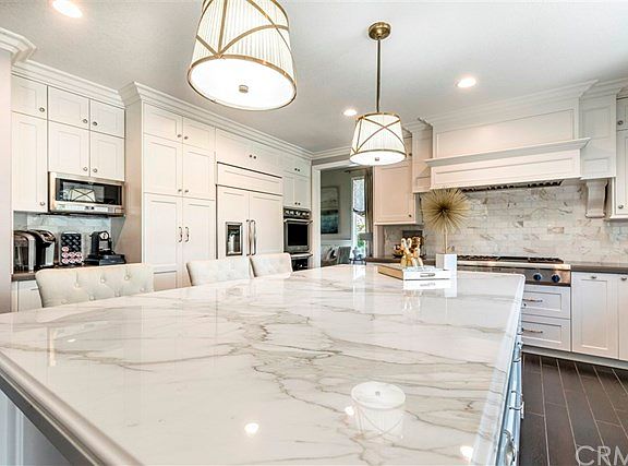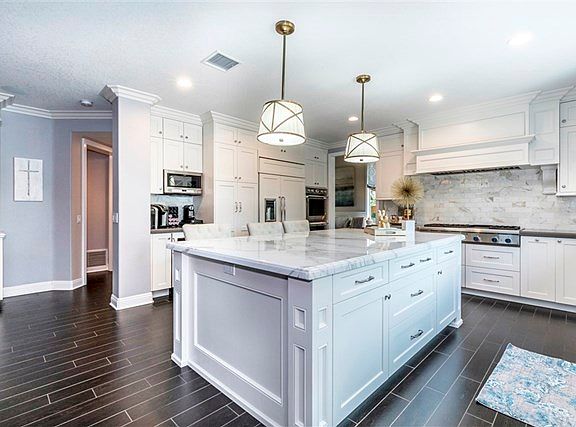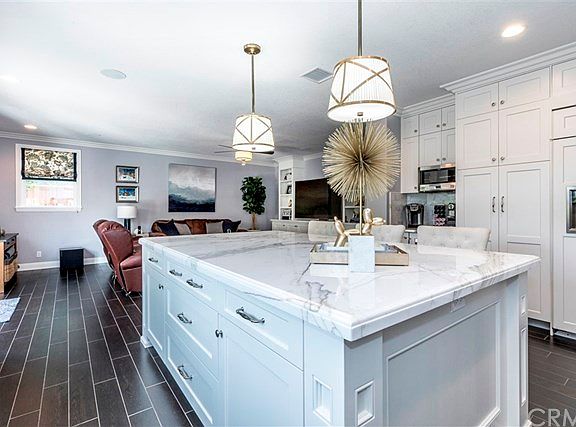 It's in the details! And no detail has been missed in this Remodeled home. Porcelain Ceramic tile flooring throughout most of the home with wood herringbone hardwood floors in the entry way and master suite. Custom baseboards, custom crown molding, and designer light fixtures are found throughout the home along with Z Wave electrical outlets. The home is App Controlled (Google, Alexa etc. ) KITCHEN-Custom Cabinets and drawers, large marble slab (waterfall finish) kitchen island, chef quality appliances, farmhouse sink, quartz counter tops, custom molding, designer lighting, opens to family room. FAMILY ROOM-custom media cabinet. MASTER SUITE-Grand is the word when describing the master suite, from the marble flooring to the ceiling. The ensuite bath has duel master sinks, large walk-in shower, gorgeous flooring and top of the line fixtures. Now, let's talk about the Master Walk-In Closet, this room has been converted from one of the secondary bedrooms into a custom walk-in closet with an island for additional storage. You could easily convert it back to the 4th bedroom if desired. The 3 gar garage has new garage doors, an automatic storage rack, and direct access. A home with all the bling of a new home and a yard! Speaking of the yard, both the front and backyards have been professionally designed and crafted with land and hardscape and it sits on the view side of the street! Don't miss this one, it truly is an amazing home.