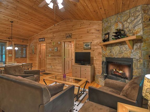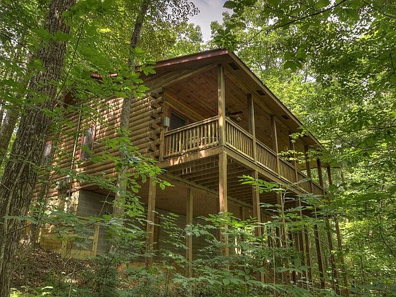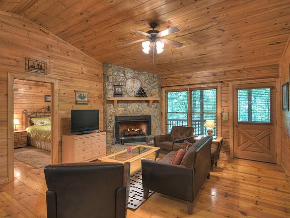 THE PERFECT MOUNTAIN GETAWAY CABIN or INVESTMENT RENTAL.PRISTINE CONDITION! 2/2 Log Cabin in the sought-after Cherry Log Mountain community. Very wooded lot for privacy.Split Bedroom Floor plan, each with private bath - perfect for mountain getaways or in a vacation rental program. Updated granite counter tops in baths and kitchen and new appliances. Laundry closet. Large pantry closet. Covered porch/deck on back of cabin with large hot tub. Wood burning fireplace in vaulted ceiling great room makes a nice gathering area to enjoy your friends and family. Newly graveled driveway with parking for 3-4 vehicles. Dry, lockable storage in basement area with new steps to get you there. PRICED TO SELL...don't let this one get away!