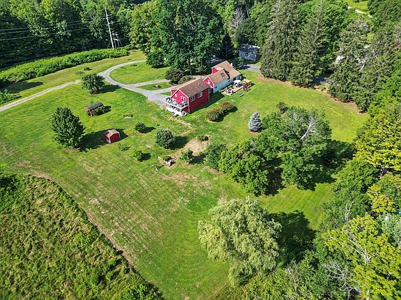 Classic red farmhouse on 3.49 bucolic acres just minutes from the heart of Stockbridge. This updated 3BR/2.5BA home blends original charm with thoughtful upgrades. Post and beam construction, a sleek gas fireplace, and a sunny open layout connect the living, dining, and kitchen areas. The first-floor primary suite includes a walk-in closet and private bath. Upstairs, two more bedrooms and a full bath offer space and flexibility. A spacious 1BR/1BA apartment above the attached garage is perfect for guests, rental income, or studio use. Proven short-term rental history adds investment appeal. Enjoy a contemporary deck overlooking lawns and trees—ideal for relaxing or entertaining under Berkshire skies. The property offers privacy, convenience, and timeless appeal in the town Norman Rockwell called home. Just minutes to downtown Stockbridge, with Lenox, Tanglewood, and Great Barrington close by. A rare blend of character, versatility, and location in the Berkshires.