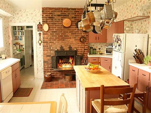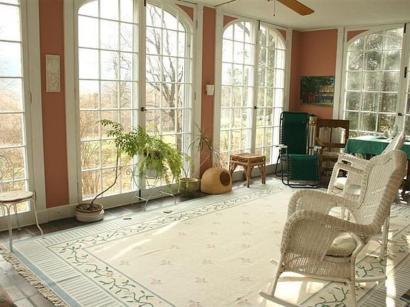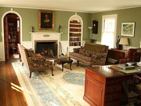 Elegant Old Bennington Home Architect-designed, well proportioned 1925 home. Situated on 1.88 acres with mature trees, over 4,500 square feet with solid oak floors and comprising: a Great Room/Living Room; tiled garden room; paneled library with built-in bookcases and exposed wooden beams; formal dining room with two corner shell cupboards; an ample pantry with glass cupboards; a quintessential eat-in country kitchen with Franklin stove inset which allows open wood fires and grilling; a master bedroom suite with fireplace; three additional bedrooms; three full-baths; two half-baths; and an au pair suite. There is also another guest-room or study in the partially-finished third floor which has ample storage space. A full, walk-out basement connects to the two-car garage. The house has spectacular views from all rooms, particularly of the Town of Bennington and the distant Green Mountains.