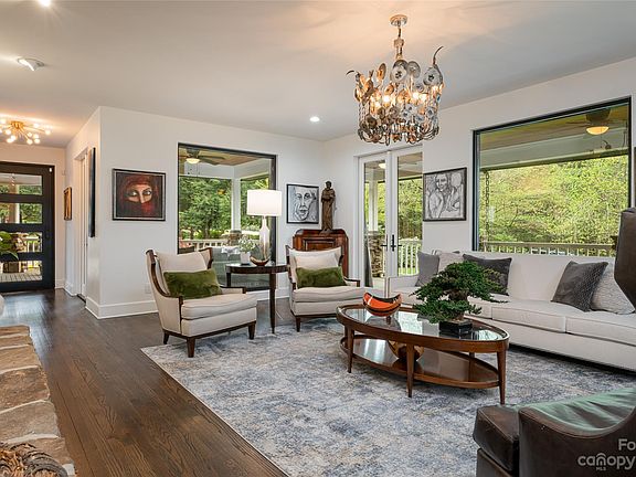 Reinvented with unparalleled attention to detail and the finest materials, all 5,000+ square feet of living space has undergone a complete transformation, the result of which is a traditional home outfitted in contemporary finishes. Light floods the foyer and gives way elegantly proportioned formal spaces that live up to the substantial square footage, allowing entertaining on the grandest of scales. The main level offers formal living, dining, a den and at the heart– the chef's kitchen boasting sleek cabinetry and top-of-the-line appliances. The upper hosts the primary suite with a private balcony overlooking the stunning landscape and a spa-like bath, three bedrooms and two bathrooms. The third level is perfect getaway for an art studio, home office or guest suite. The basement level features a family room and an en-suite bedroom that walks out to the private backyard.Over 1,500 square feet of porches to enjoy the tranquil setting. A must see fully renovated home in Biltmore Forest!