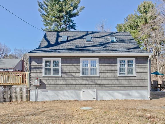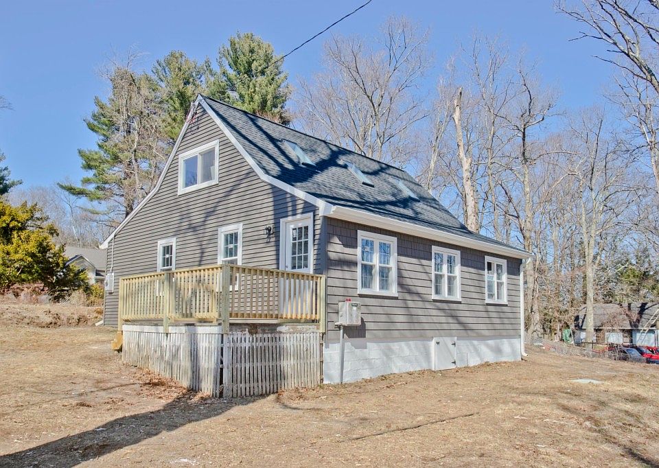 Fully renovated, 1100sqft vaulted ceiling CAPE lake home on .26 acres. Comes complete with two bedrooms (not counting second floor loft), full main floor bath, main floor laundry/utility room, open concept kitchen, open concept living room/dining area. This home has views of Crystal Lake from; its yard, side deck, foyer, living room/dining room combo, kitchen, out its loft's skylights, the exit slider, and from the lake side brick-pavers-patio with a matched stone fire pit. This home was taken down to the framing, and given a brand new vaulted roof design front to back and given all new windows, gorgeous siding with front shaker style accent and new gutters. Home was brought up to code, was fully insulated and vapor barrier-ed, given all new electrical 200 Amp service all new wiring and fixtures (the works), home has new plumbing, brand new sheetrock, all new trim and paint. The kitchen cabinets are new, the granite and GE, slate finish, appliances are new. The wood look floors are an impressive vinyl product, the bathroom is tile and YES it too is all NEW as well, and the original wide-planked loft floor boards have remained for nice rustic touch. The BEST part is all this newness and charm comes with tranquil lake views at nearly every turn. (Agent is managing member of the LLC that owns this home and the western half of the .53 acre lot (the vacant half) does not transfer at sale, so lot at sale will be about .26 acres (consisting of the eastern half).
