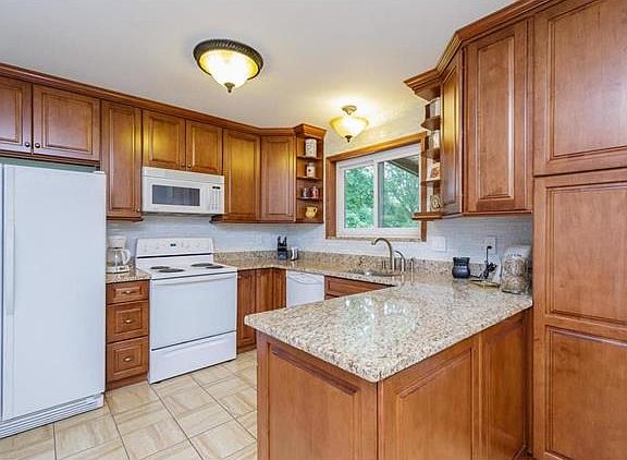 This adorable ranch is a true gem! Hickory wood floors in living & breakfast rooms, beautiful kitchen with custom wood cabinetry, granite countertops and tile backsplash. Lovely covered deck off of breakfast room. Finished walk-out lower level with family room, game room and possible sleeping room. Walk out on the covered patio from the lower level to the level fenced backyard. This home offers new siding, gutters, soffit & fascia, main floor windows & sliding door, new vanity in hall bath, new driveway, patio, 6 panel doors and all new flooring upstairs & down.