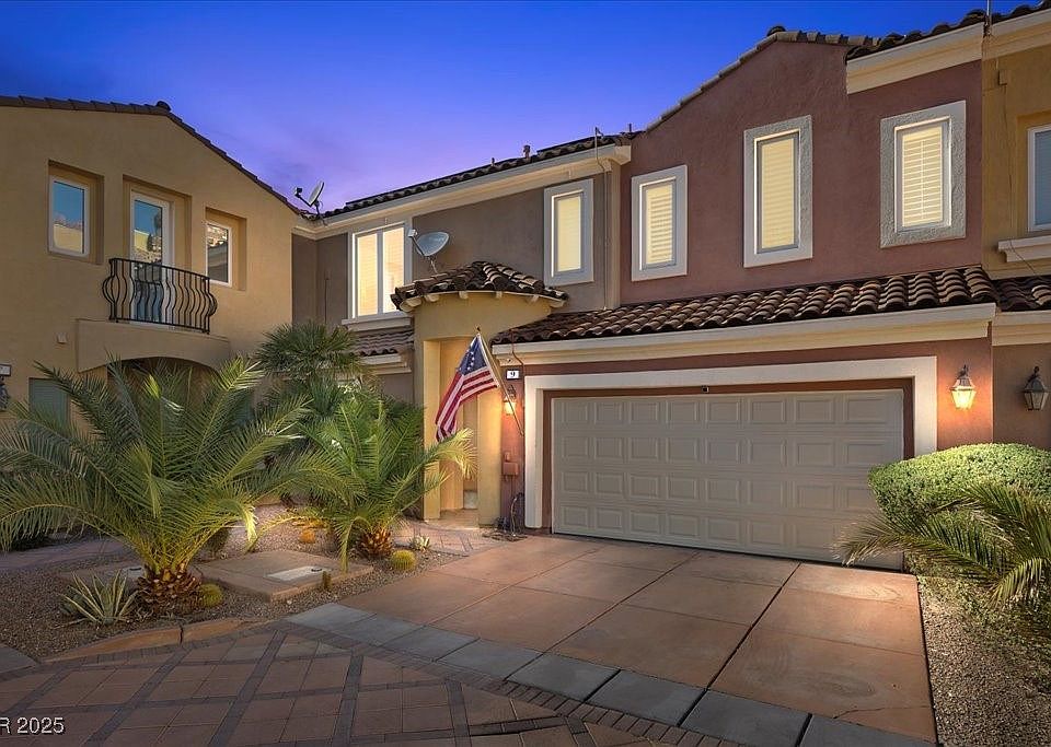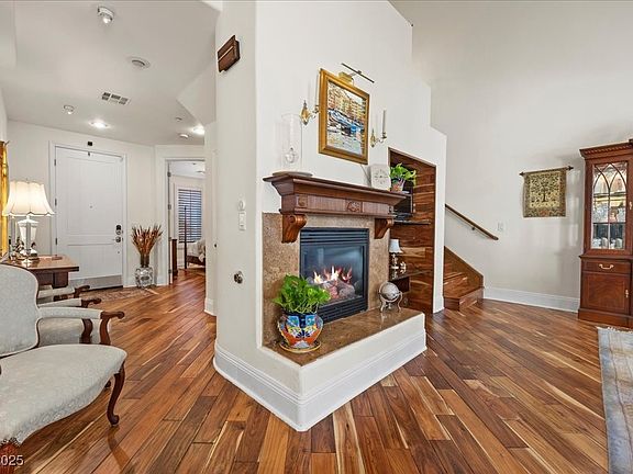 Located on a large end lot in a cul-de-sac, this 2,000 sq ft Lake Las Vegas residence evokes the charm of a Mediterranean villa. Sunlight spills through louvered shutters onto rich hardwood floors, while new dual-pane windows frame serene views. The chef’s kitchen, complete with a built-in oven, is designed for both everyday living and refined entertaining. Recent upgrades, including new air conditioning units, blend modern comfort with timeless style. A den doubles as a third sleeping quarter (although it does not have a closet), it is large enough for a queen size bed and two nightstands. Just moments from the vibrant village, shimmering lake, and world-class amenities, this home offers a Lake Las Vegas resort lifestyle.