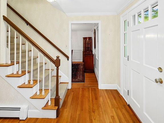 Classic four bed colonial in desirable East school district. This pristine home offers a great flow from fireplace family room to spacious eat in kitchen flanked by a bank of windows offering incredible natural light. Faneuil kitchen with island, breakfast bar, built in desk and custom cabinetry will be the hub of family activity. The large front to back living room and half bath flow seamlessly from the entry way to kitchen and family room. Two decks and back door/mud room area lead to the side and backyard. Four beds and laundry on the second floor and two full baths. The finished lower level also includes ample storage area and additional playroom for a growing family. This is the home you have been waiting for in this wonderful welcoming neighborhood! You can walk to library and downtown Hingham easily from this location!