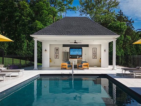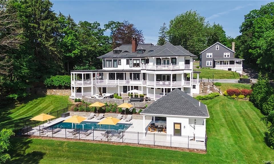 A great legacy meets true luxury: Hudson Shore Estate, formerly home to one of Eleanor Roosevelt's early passion projects, a pioneering vocational school for women, has now been masterfully restored to its former glory and offers the perfect setting for a family compound or luxury wellness retreat. A unique example of Arts & Craft design amongst its peer group of renowned Hudson River mansions, the 7,700-square-foot main house has been completely renovated in the past 5 years, and now features a gourmet kitchen, all new high-efficiency systems, and no less than six luxury bedroom suites, each with its own bathroom, plus a remarkable third-floor owners' suite with an enormous spa bath and den. Restored covered balconies and bluestone patios offer a stunning view of the new multi-level heated-pool area with its fully outfitted cabana and kitchen, plus, beyond, the Vanderbilt Mansion and seasonal glimpses of the Hudson River. A walkout basement level features a sauna, half bath, and multiple spa and exercise rooms. Meticulously preserved are all of the original details of the house, including chestnut wainscoting and beams, lozenge-paned casement windows, heart-shaped balustrade carvings, and ceramic tiles made at the Moravian Pottery and Tile Works, the premier source of Arts & Crafts decoration in America. The main floor's grand Moravian-tiled living room played host in the 1920s to vocational classes for local women when Hilda Worthington Smith, wealthy daughter of the original owner, an inventor of steam-heating systems, founded the Hudson Shore Labor School. Eleanor Roosevelt, a longtime board member and instructor at the school, credited her own experience teaching at the property as inspiration for her future activism as First Lady. The property also includes a separate and fully renovated 2-unit Carriage House building with potential commercial space, including a new ADA-accessible bathroom and kitchen, on the first floor; and, above, a wonderful light-filled 2-bedroom luxury apartment with a cathedral-ceilinged great room. Virtually every square foot of both buildings has been restored or overhauled by some of the most talented contractors and artisans in the region, with the final result being a genuine move-in-ready masterpiece that's only 90 minutes by car from Manhattan and only 5-15 minutes from the charming New Paltz village center, the MetroNorth station in Poughkeepsie, the waterfront Kingston Rondout district, and neighboring wineries and other Hudson River culinary hotspots.
