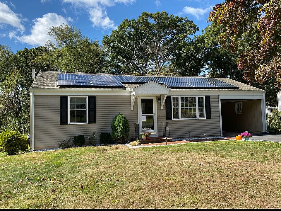 Looking to downsize or looking for an easy starter house? Welcome home to this lovingly maintained 2 bedroom ranch in a nice neighborhood located close to a park and an elementary school. Enjoy the spacious kitchen with newer appliances and granite countertops and ample natural lighting from a skylight. Additional living space (square footage includes finished lower level) in the finished basement complete with ½ bath, storage area, wall-mounted infrared fireplace, high ceiling, and prewired for a home theatre. Step out onto the peaceful deck on nice days. Low maintenance yard. There are two sheds for plenty of outdoor storage. Radon Mitigation System - new fan installed July 2020 City Sewer - no septic! Hot Water Heater Replaced - May 2018 Well Water Tank Replaced - 2019 Whirlpool Refrigerator Bought in 2020 Range Microwave Replaced in 2019 Dishwasher - Garbage Disposal New Oil tank and Supply Line - 2013 Roof - 2012 Solar Panels installed November 2019, buyer to assume lease. For sale by owner.