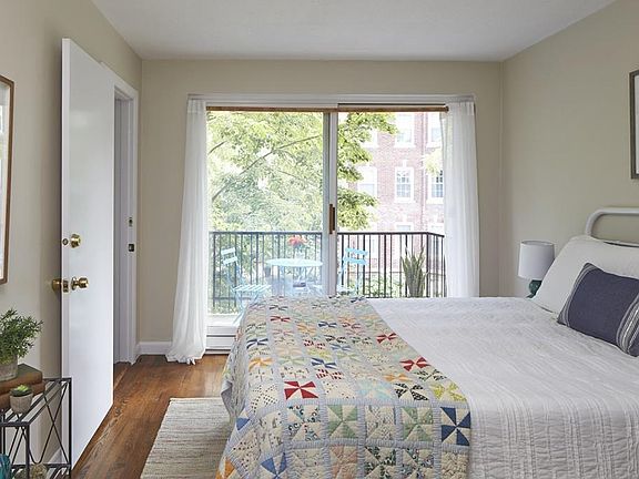 Enjoy your morning coffee on the sunny front-facing balcony of this fantastic two bedroom, one bathroom condominium, located on the 3rd floor of professionally managed brick building. Ideally situated near Harvard Square and around the corner from Lesley University and Harvard Law School, this bright 995 square foot unit combines mid-century details and modern amenities. This home features an open dining/living area with wood-burning fireplace and brick accent wall, wood floors plus an updated kitchen with butcher block countertops, tile backsplash and new dishwasher & microwave. There is a double sink vanity in the vintage tiled bath and ample closet space throughout. Common roof deck with sweeping views. The private storage, common laundry and direct access to the off-street parking space is located on the first level. The low condo fee includes heat and hot water. Recent building updates include a new heating system and elevator. A new roof is scheduled for late August.
