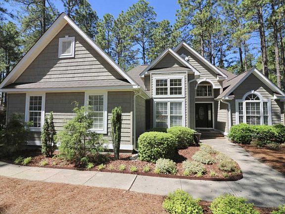 Fully transferable Pinehurst Country Club membership. Low maintenance living on single level with high ceilings, wood floors and popular split floor plan. Large master suite with sitting area/office space, large wlak-in closet, whirlpool tub, shower and double vanities. Eat-in Kitchen has vaulted ceiling, bar and pantry. Maple floors throughout with tile in the bathrooms. Great room is vaulted, open and bright, 11-12 ft ceilings in dining & foyer, wood-burning FP, heat pump approx. 7 years old, newer Bosch dishwasher, wired for generator, floor safe, 220 outlet in bedroom was used for tanning bed, concrete drive, large rear deck and more. **New roof end of April 2017**